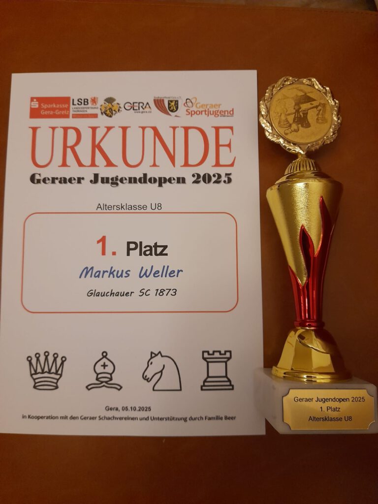 Mit 77 Teilnehmenden aus mehreren Bundesländern fand parallel zum Albrecht Beer-Open am 4. und 5. Oktober 2025 das Geraer Jugendopen U14 in der Panndorfhalle statt. Markus Weller war diesmal der einzige Glauchauer Spieler.